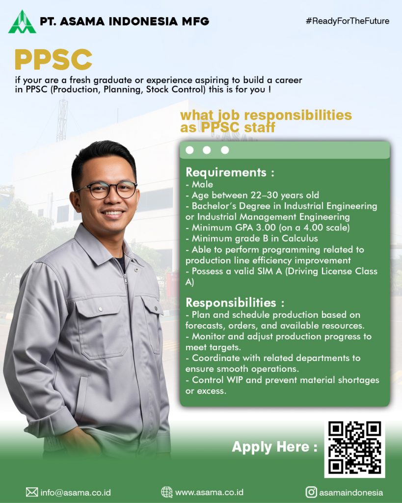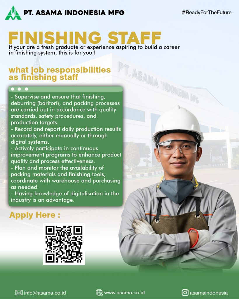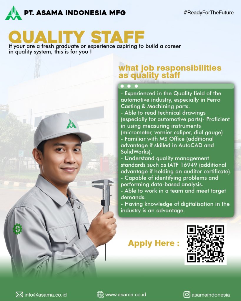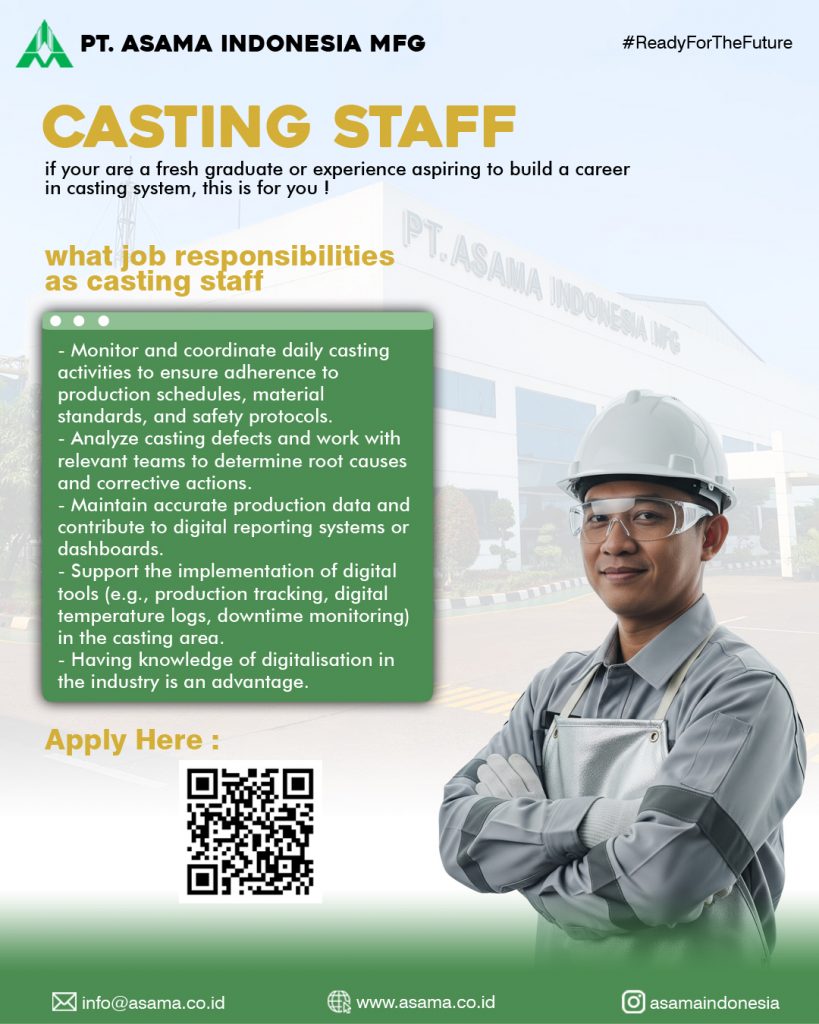 Position to apply : Quality StaffCasting StaffFinishing StaffMachining StaffHSE StaffPPSC Staff Name : date of birth : University : Major / Jurusan : Organizational Experience : Email : Phone Number : Linkedin : Instagram : Curriculum Vitae (PDF, Max 2mb)